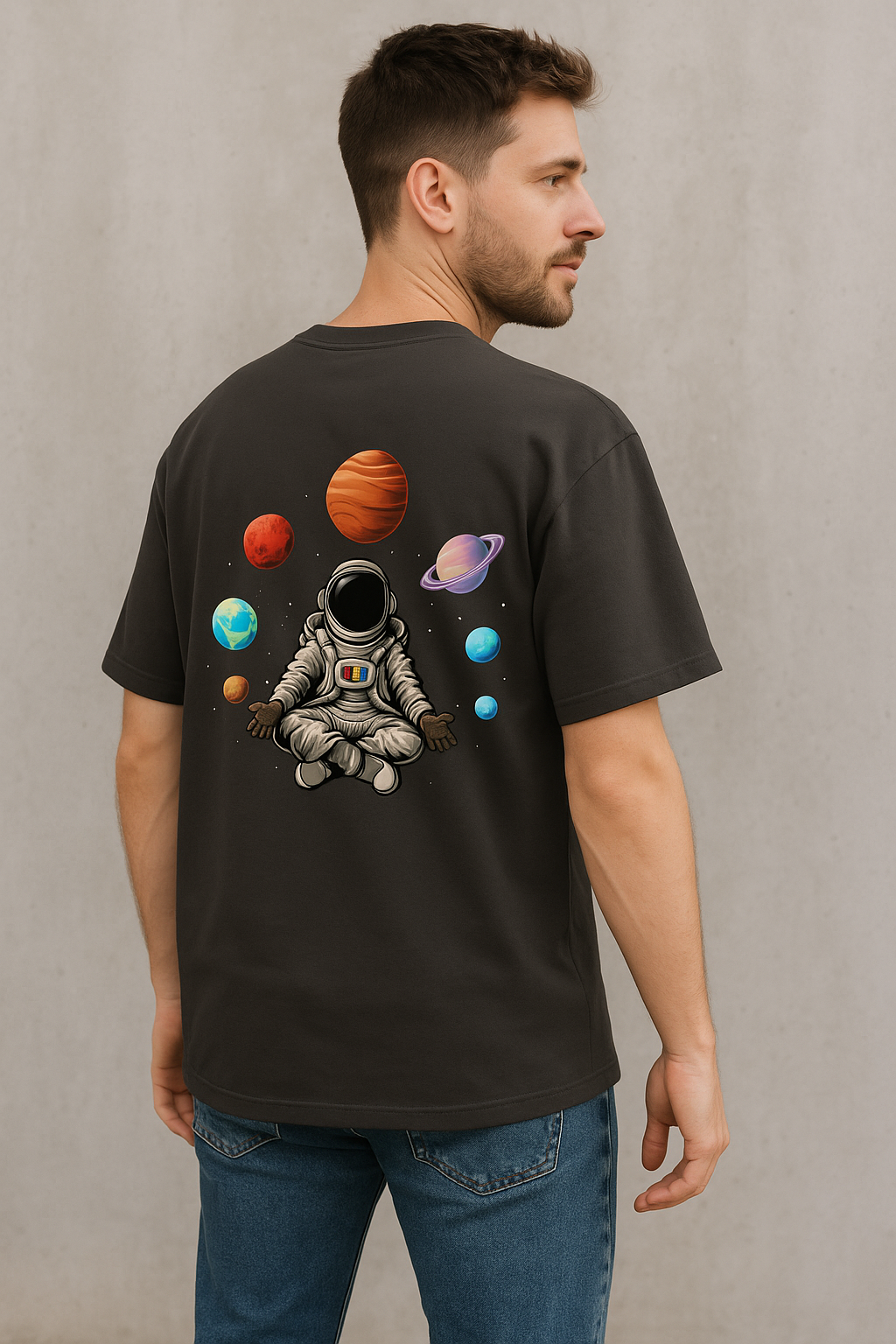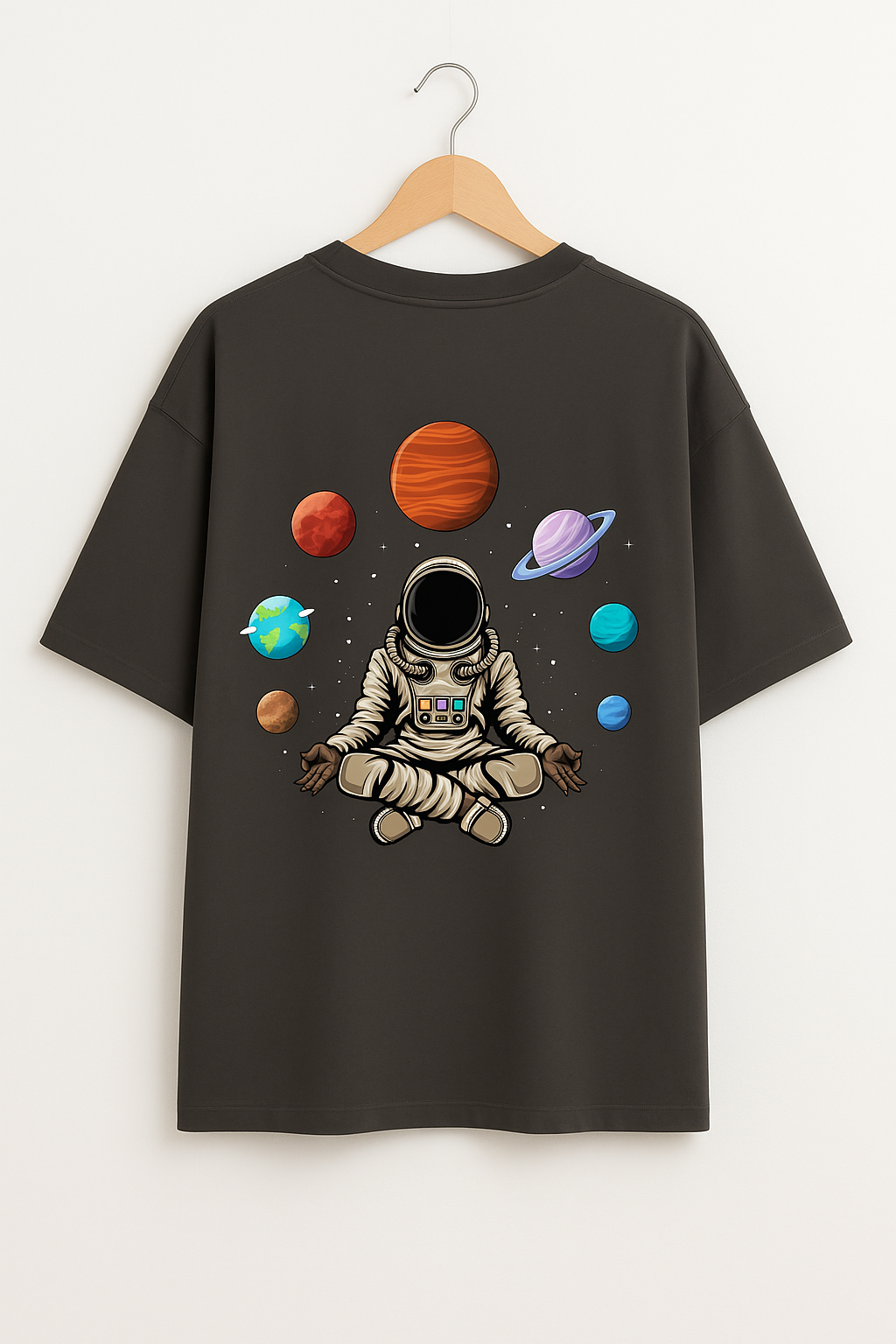Step into the universe with our Cosmic Drift Oversized Terry T-Shirt. Featuring a vibrant, surreal illustration of a meditating astronaut surrounded by planets, this back-printed design captures the essence of mindfulness in outer space. Crafted from soft, breathable terry cotton, this tee blends comfort with cosmic style. Perfect for space lovers, streetwear fans, or anyone with a wild imagination.